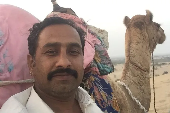 Your afternoon includes pickup from Jaisalmer, a guided stop at Kuldhara village, your own camel for a 90-minute desert ride through either Sam or Khuri Sand Dunes, plus snacks and bottled water as you watch sunset on the sand. Afterward there’s a freshly cooked local dinner before returning by jeep to town in the evening.