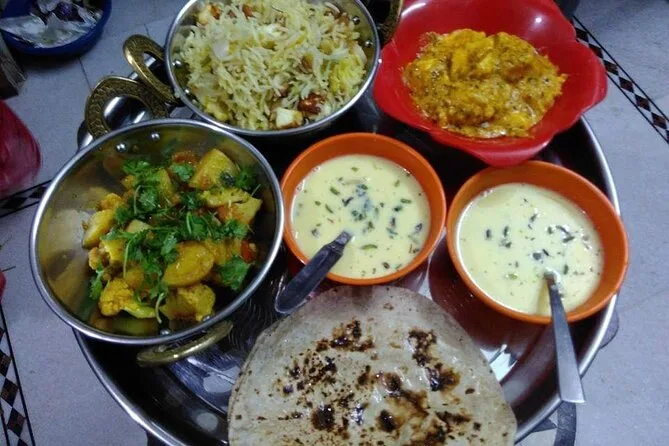 Your day includes private transportation to and from the host’s home in Jodhpur plus bottled water throughout your stay. All ingredients are provided (cooked using mineral water), along with tea or coffee breaks as you go. You’ll prepare multiple vegetarian dishes side by side with your hosts before sitting down together to enjoy everything you’ve made as one big meal.