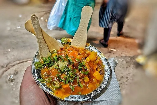 You’ll try samosas, jalebi, kachori or aloo tikki/aloo chaat, chole bhature or bedmi poori aloo or parantha with sides, plus lassi or chai depending on season.