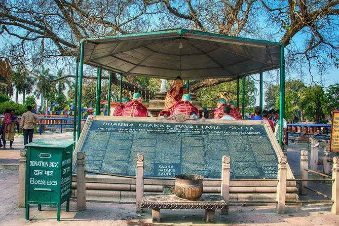 You’ll walk through Sarnath where Buddha gave his first sermon—exploring temples, ancient ruins, a peaceful deer park, and even seeing Ashoka’s pillar up close—all guided by your own audio tour so you can linger wherever you like.
