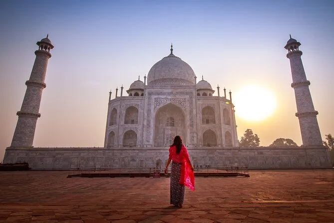 The tour includes the Taj Mahal at sunrise, Agra Fort, Tomb of I'timad-ud-Daulah (Baby Taj), plus lunch.