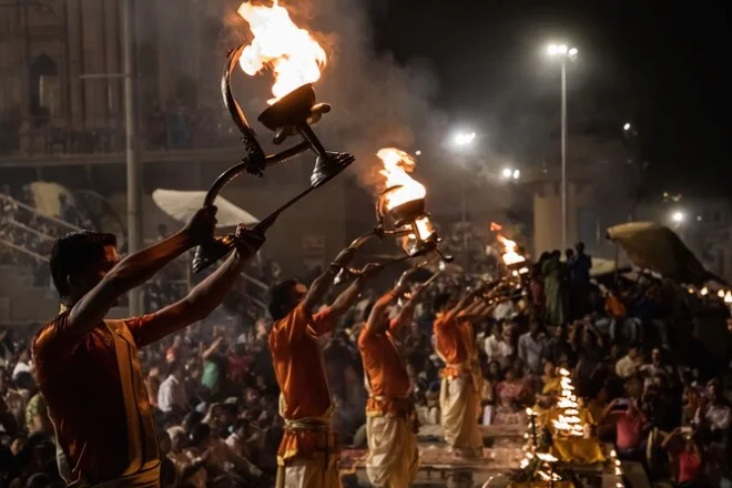You’ll join an evening boat tour along Varanasi’s legendary ghats—watching sunset prayers at Dashashwamedh Ghat, feeling the energy of Ganga Aarti up close, then drifting by Manikarnika’s burning pyres as your guide shares stories that linger long after dusk.