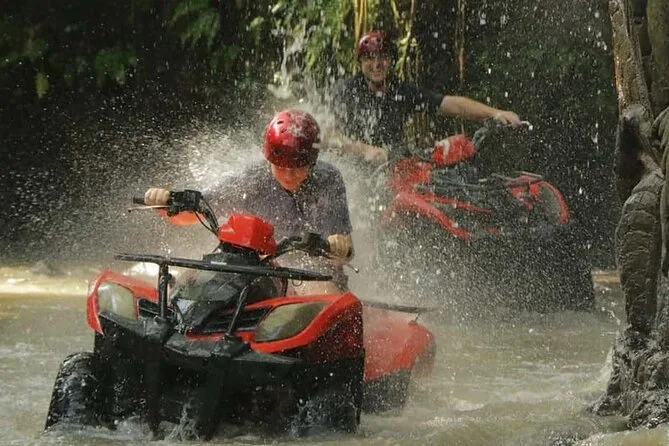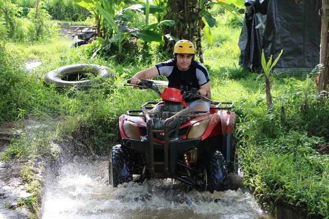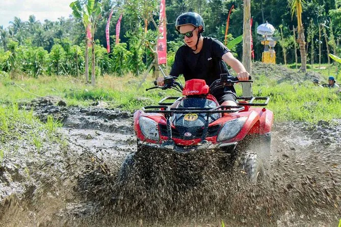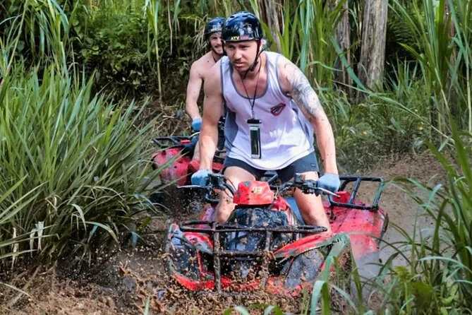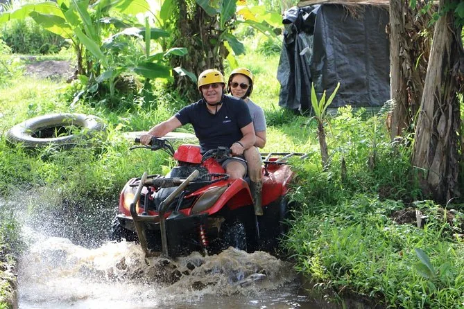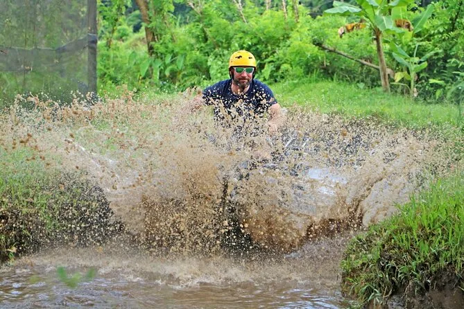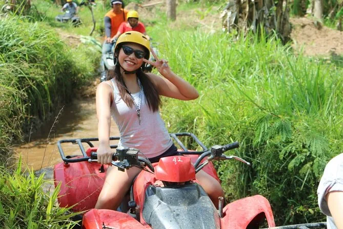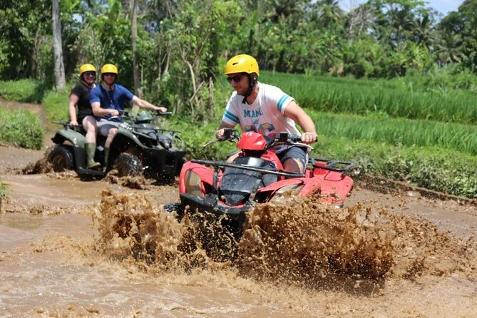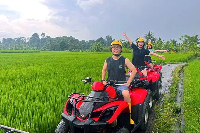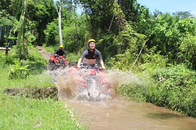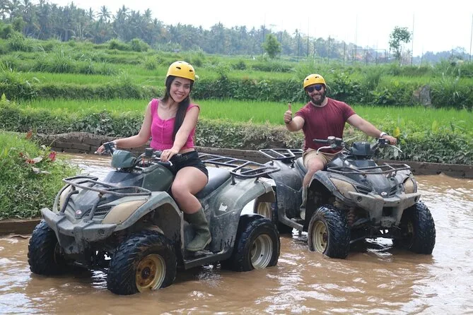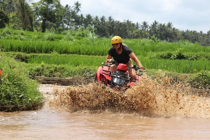 The ATV ride lasts around 2 hours through jungle, rice fields, bamboo forest, and villages near Ubud.