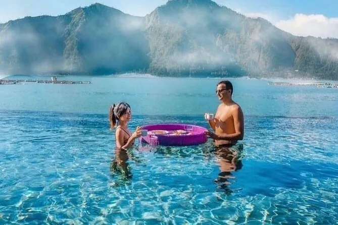 A buffet lunch featuring Indonesian and Balinese dishes is included at Grand Puncak Sari overlooking Mount Batur.