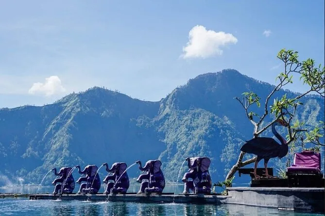 Your day includes private air-conditioned transport with pickup and bottled water throughout; entry fees to Tegallalang Rice Terrace, Tirta Empul Temple, coffee tasting at a local plantation; buffet lunch overlooking Mount Batur; plus access to soak in Batur’s natural hot springs before returning in comfort to your hotel or starting point.