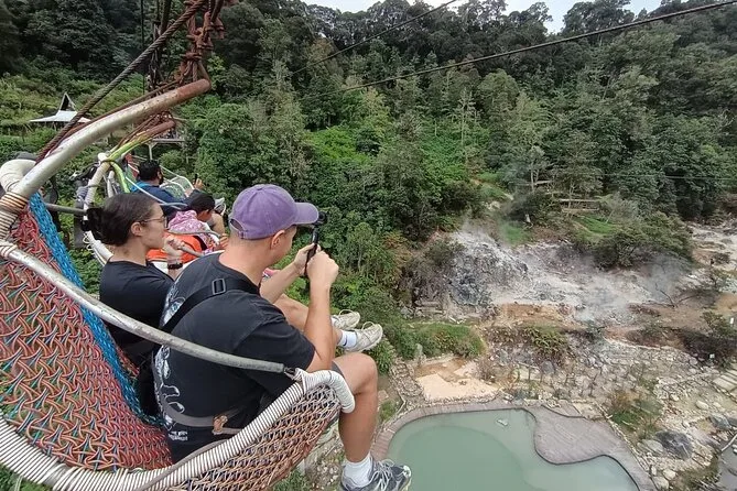 We’d come from Bandung early — not too much traffic, which surprised me. The drive south was green and quiet, with tea plantations rolling past outside the window. After the White Crater, we headed for this suspension bridge I’d seen on Instagram (it’s longer than it looks in photos). Crossing it felt wobbly in a way that made us all giggle nervously. There was this “Sultan Basket” thing — basically a little cable car basket you can ride across if you don’t want to walk. Rina said kids love it but I think adults do too; one guy in our group yelled “I’m flying!” and everyone cracked up.