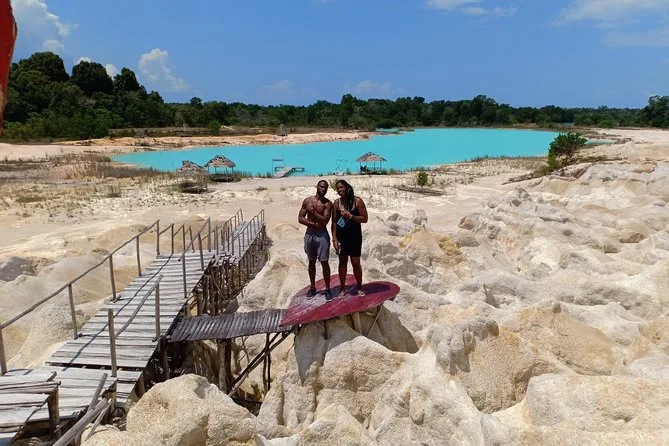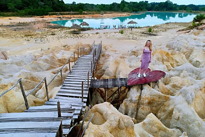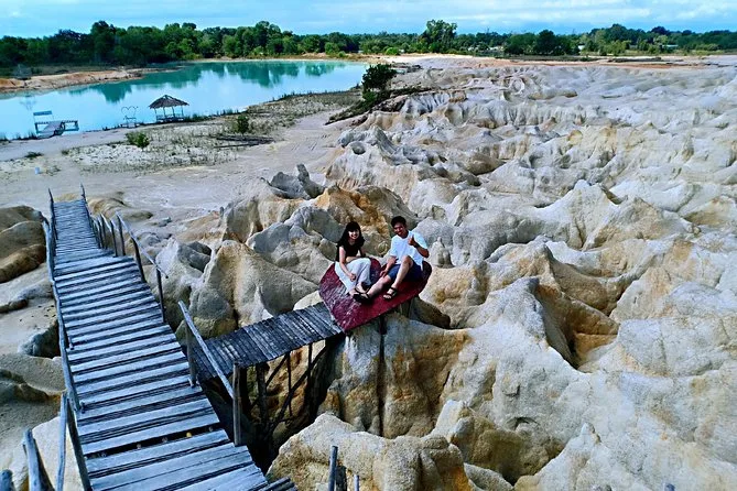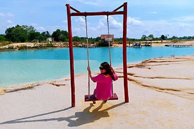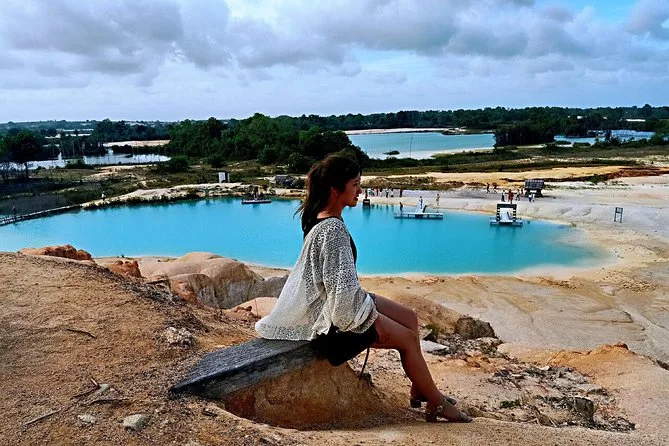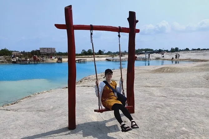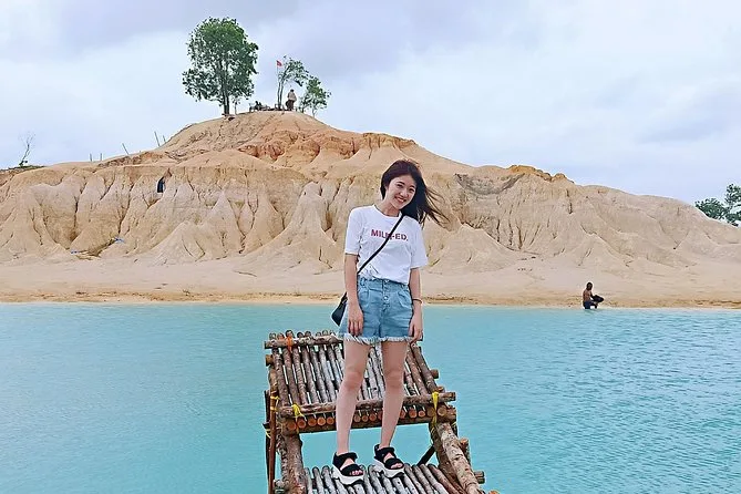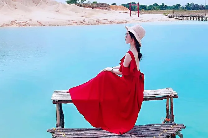 Wira points out where the mining used to be, says nobody expected rainwater to turn those craters into such bright blue lakes. There’s this odd moment where I’m just staring at the water — it’s so clear it almost looks fake, you know? A couple of locals are selling drinks nearby (coconut water in plastic bags), and some kids are daring each other to run up one of the smaller dunes. My friend tries to get a photo of me with both the lake and the sand in one shot but mostly catches me blinking in the sun. Still, I kinda love that picture.