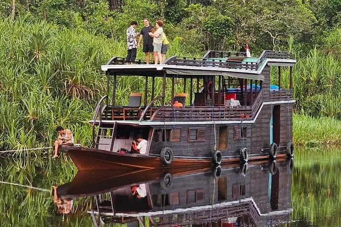 Your journey includes pickup from Pangkalan Bun or Kumai, all transportation by traditional kelotok boat (with sleeping beds and mosquito nets), an English-speaking local guide throughout your trip, all entrance fees to feeding stations like Camp Leakey and Tanjung Harapan, plus all meals—breakfasts, lunches, dinners—and plenty of coffee or tea while you float past rainforest scenery each day.