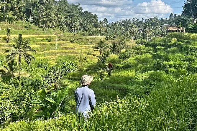 Your day includes hotel pickup and drop-off anywhere around Ubud, all entry fees to sites like Monkey Forest Sanctuary and Tirta Empul temple, travel by private air-conditioned vehicle with an English-speaking guide who also drives (Wayan made sure we never missed a story), a local Balinese lunch overlooking rice fields, bottled water along the way, plus fuel charges so you don’t have to think about anything except what you’re seeing next.