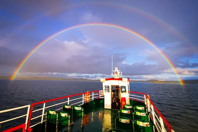Your day includes free onsite parking at Westport Harbour before boarding a modern passenger ship with enclosed heated lounge, upper viewing deck, onboard WiFi and toilets. There’s live guided commentary throughout your 90-minute Clew Bay cruise plus an onboard bar and café for drinks or snacks along the way.