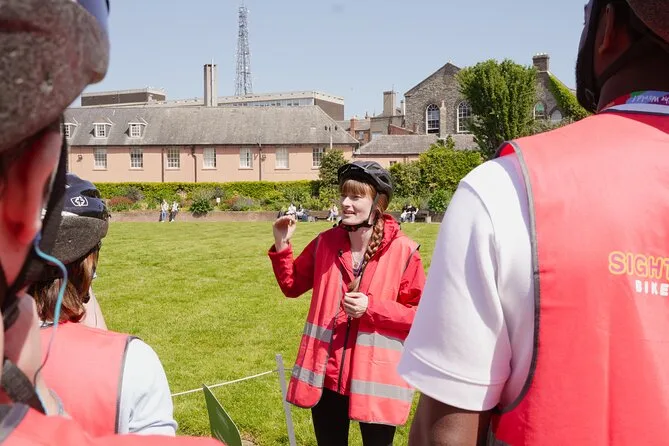 Your day includes use of an e-bike or standard push-bike (your choice), helmet and hi-viz jacket for safety, plus a headset so you can hear your local guide clearly as you ride through Dublin together—no need to bring anything except yourself and maybe a raincoat if you remember it!