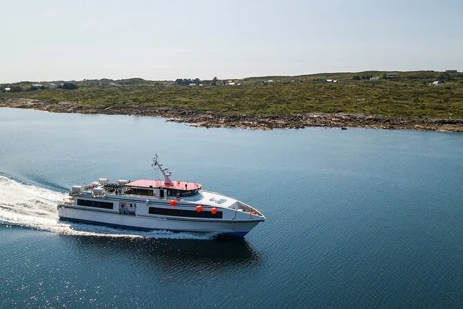 Your day includes round-trip ferry travel direct from Galway City Docks to Inis Mór with plenty of free time on the island itself plus an onboard audio guide sharing stories about prehistoric forts and wildlife as you cruise beneath the Cliffs of Moher before returning home again by sea.