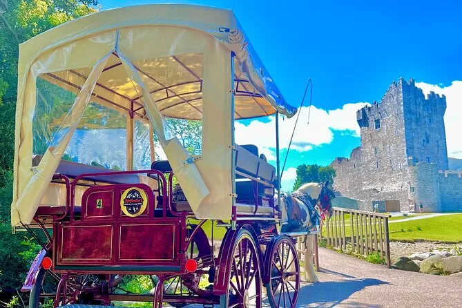 Your day includes entry into exclusive park routes only accessible by jaunting car with commentary from your local guide sharing history and folklore along the way; cozy wool blankets are provided onboard for chilly weather; plus time to stop at Ross Castle grounds or along the lakeshore before finishing up with tea or snacks at Deenagh Lodge cottage.