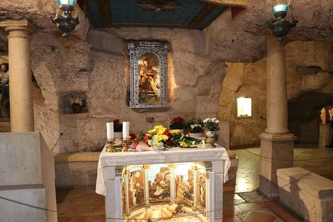 Your day includes private transportation with air conditioning from Jerusalem or Tel Aviv, all entry fees for sites visited in Bethlehem including Church of the Nativity and Milk Grotto, guidance from a local expert while exploring Bethlehem’s historic streets, plus time at a Dead Sea beach resort before returning late afternoon or early evening.