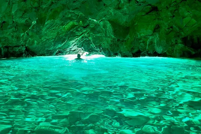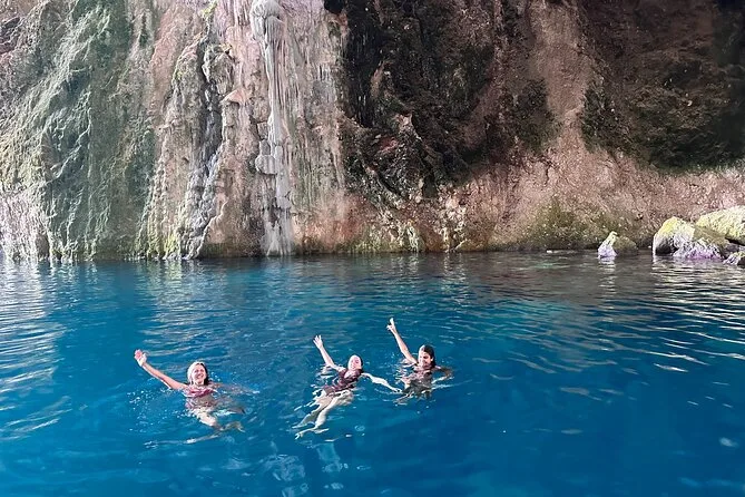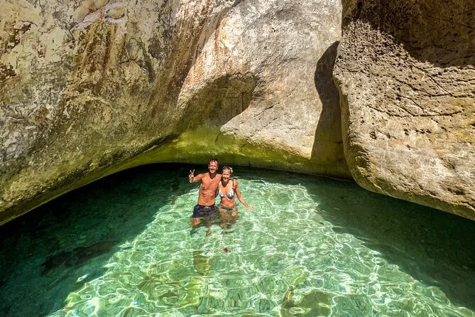 Il tour dura circa 8 ore, con soste per nuotare, fare snorkeling, esplorare grotte e camminare a Grama Bay.
