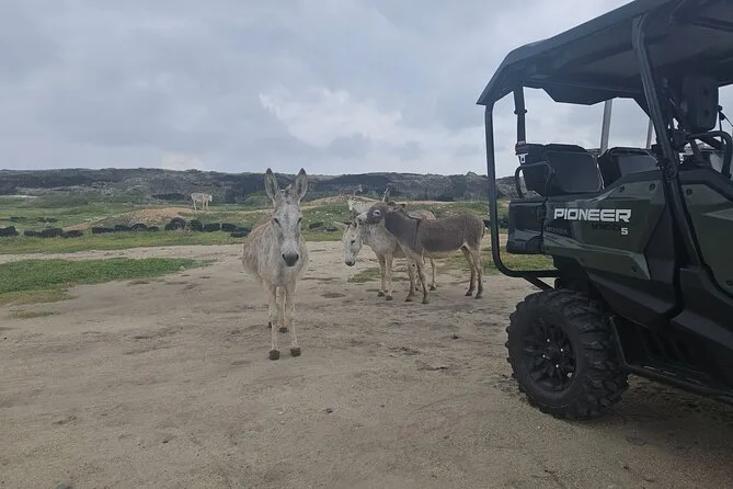 Il tuo giorno include il pick-up e il drop-off negli hotel di Oranjestad o Palm Beach, acqua in bottiglia per rinfrescarti sotto il sole del deserto, snack leggeri per quando arriva la fame durante il percorso, e una guida locale che conosce ogni scorciatoia e storia da raccontare mentre esplori il lato selvaggio di Aruba insieme a noi.