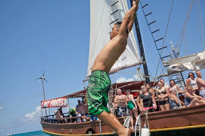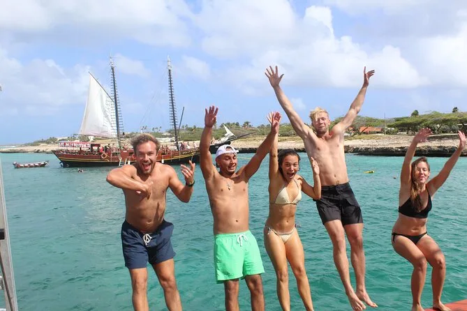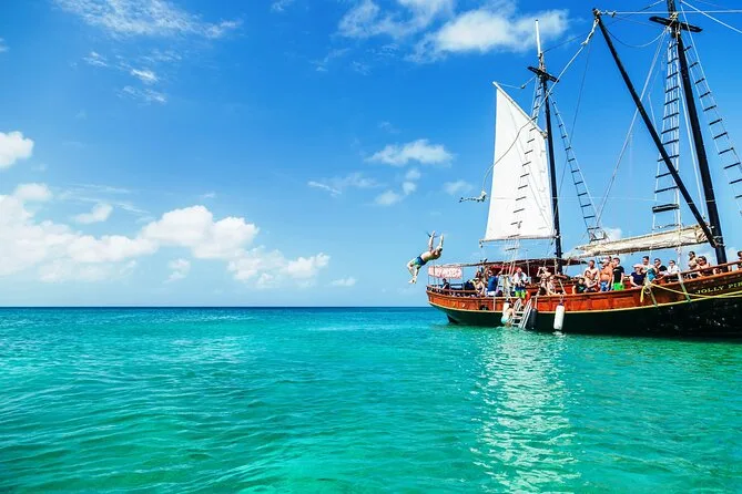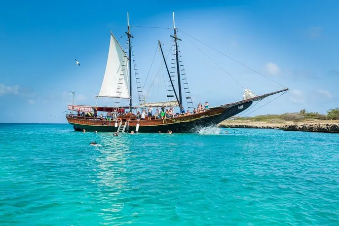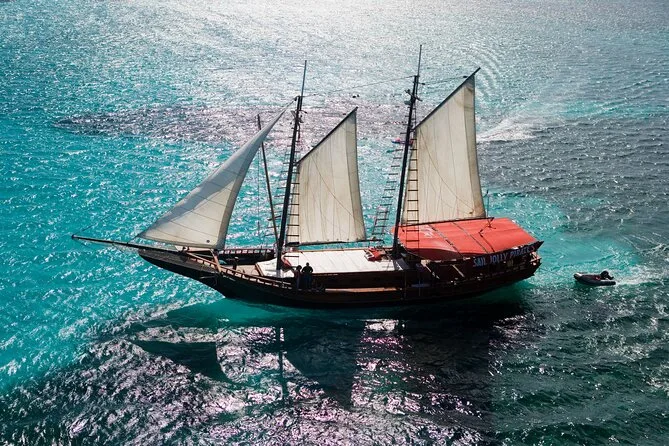 Salpa su uno schooner pirata di 26 metri per una crociera rilassante lungo la costa di Aruba con soste per fare snorkeling sulle barriere di Malmok e visitare il relitto Antilla. Prova a tuffarti dalla corda o semplicemente rilassati al sole sul ponte. Un pranzo BBQ e open bar rendono tutto più piacevole mentre le guide locali raccontano storie e ti aiutano a scovare i pesci colorati.