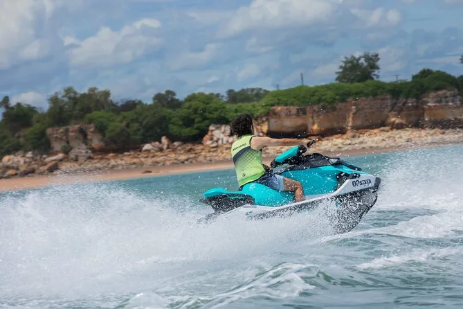 L’ora include l’uso di un jet ski moderno con carburante incluso, un giubbotto di salvataggio che calza davvero (niente taglie a caso), acqua in bottiglia per combattere la bocca secca dal sale e crema solare se l’hai dimenticata — basta presentarsi al Darwin Waterfront HQ pronti a divertirsi.