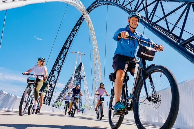 Il tuo giorno include l’uso di una bici comoda e casco, più la guida di un esperto locale mentre esplori i sentieri lungo il fiume, siti storici come l’Old Mill, il nuovo quartiere intorno allo Optus Stadium e una pausa rilassante in caffè prima di tornare a South Perth.