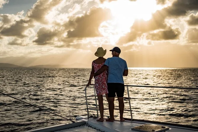Osserva i colori tropicali cambiare sul Coral Sea mentre navighi da Port Douglas con un drink di benvenuto in mano. Gustati canapè gourmet serviti da un equipaggio amichevole, mentre una musica soffusa accompagna il tramonto sulle montagne. Un’atmosfera rilassata e senza fretta, perfetta per staccare la spina la sera.