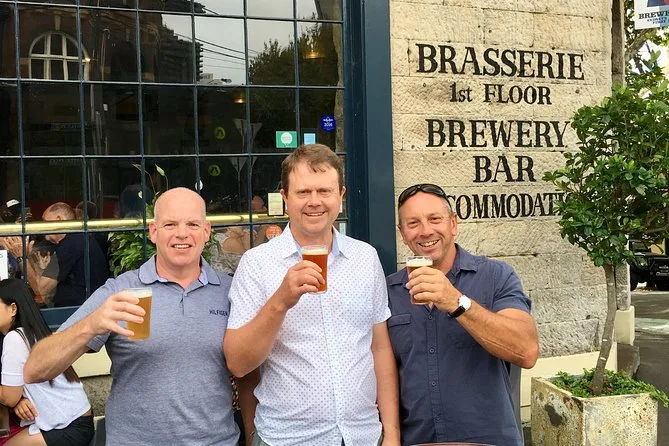 Il pomeriggio include tutti i drink—birra artigianale, vino o analcolici in quattro pub storici—più una passeggiata guidata di 2,5 ore a The Rocks con tante storie raccontate dalla tua guida locale professionista, per concludere proprio dove hai iniziato.