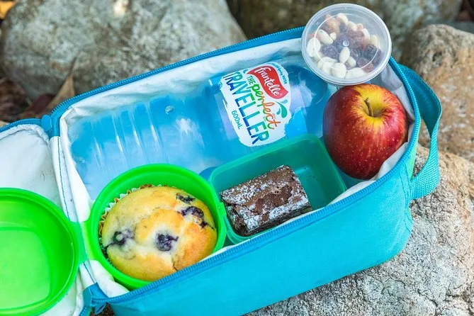 Riceverai il tè del mattino: muffin ai mirtilli, brownie al cioccolato, frutta secca e noci, mela, acqua in bottiglia, tè o caffè.