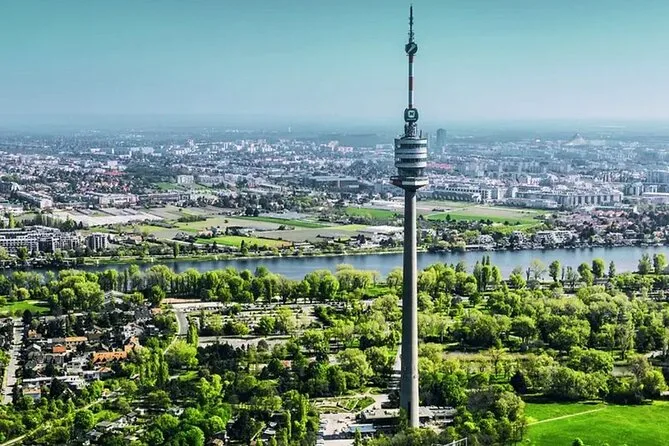 Abbiamo raggiunto la Torre del Danubio proprio mentre le nuvole si aprivano. L’ascensore veloce ci ha portati sulla terrazza panoramica — le orecchie sono scoppiate a metà salita! Da lì si vede tutta Vienna stesa sotto, fino ai confini della città se il cielo è limpido. In cima c’è un bar girevole; ci siamo seduti un attimo, sorseggiando acqua (offerta gratuitamente in auto) e guardando le barche scivolare sul fiume lontano.