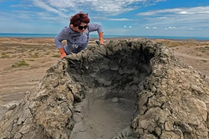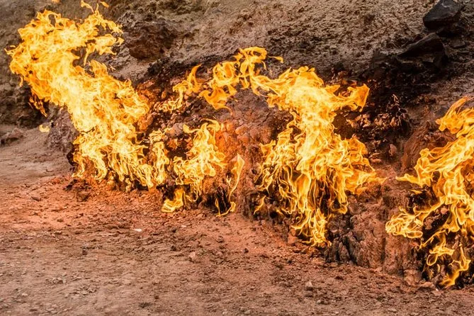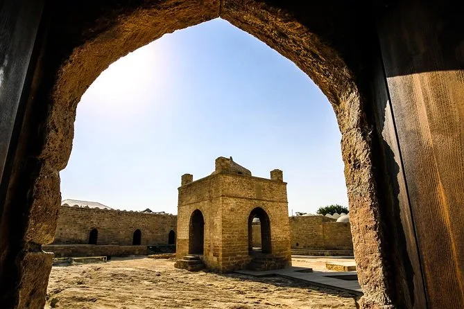 Visiterai la collina infuocata di Yanar Dag, il Tempio del Fuoco Ateshgah, il sito di arte rupestre di Gobustan, i vulcani di fango e la moschea Bibi-Heybat.