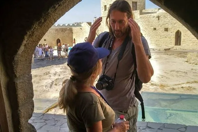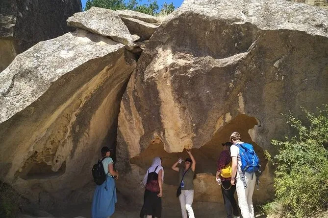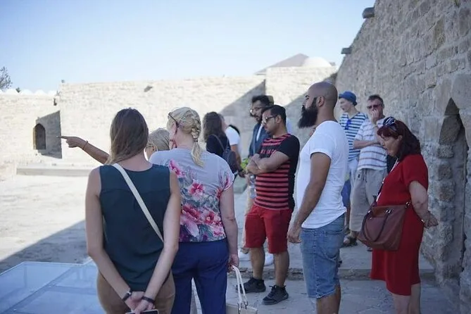 L’arte rupestre di Gobustan era più silenziosa—quasi troppo dopo il fuoco. Il gruppo seguiva Rashad mentre indicava incisioni di cacciatori e danzatori scolpite nella pietra migliaia di anni fa. C’è stato un momento in cui tutti hanno smesso di parlare insieme e si sentiva solo il vento che muoveva l’erba secca. Qualcuno ha chiesto se si potevano toccare le rocce (no), poi Rashad ci ha raccontato delle antiche tribù che vivevano qui prima ancora che Baku esistesse. Le mie mani si sono sporche di polvere appoggiandomi a un masso per osservare meglio una delle figure stilizzate.