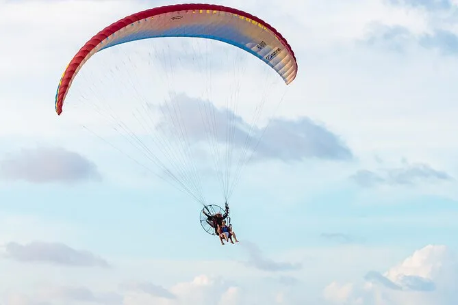 La tua esperienza comprende un volo doppio in paramotore con istruttore sopra la Praia do Futuro, tutta l’attrezzatura di sicurezza fornita da piloti certificati e un video del volo da portare a casa.