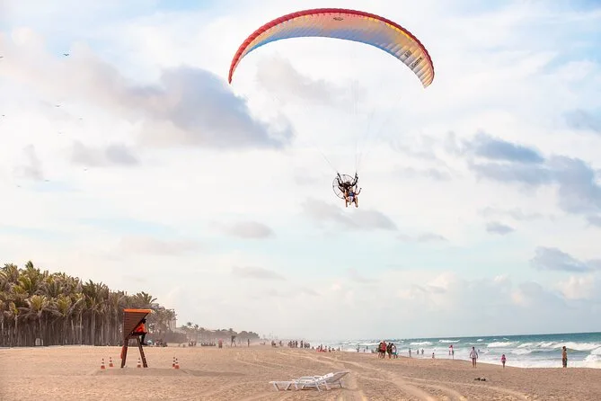 Sentirai il cuore battere forte mentre decolli dalla sabbia della Praia do Futuro con un pilota locale certificato che ti guida in ogni momento. Ammira la costa di Fortaleza, senti la brezza marina sul viso e porta a casa un video ricordo del tuo volo in paramotore — un’esperienza che non dimenticherai facilmente.