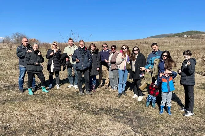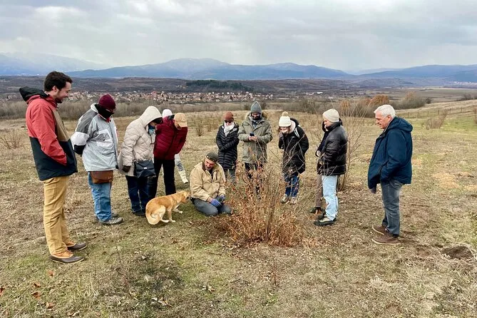 Seguirai un cane addestrato tra i noccioleti di Kyustendil alla ricerca del tartufo nero, poi vedrai la pasta fresca preparata a mano prima di sederti a un pranzo di tre portate abbinato a vini bulgari e rakia fatta in casa. Risate e sapori che porterai con te a lungo.