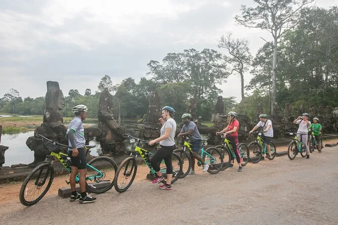 La giornata include il ritiro e il ritorno in hotel a Siem Reap, i biglietti d’ingresso per tutti i templi principali del percorso, una colazione sostanziosa dopo l’alba ad Angkor Wat, il pranzo accanto al lago Srah Srang, acqua e snack durante il giro, l’uso di una mountain bike Trek o e-bike con casco se preferisci l’assistenza elettrica—e sempre una guida locale in inglese che ti accompagna passo (e pedalata) dopo passo lungo i sentieri nascosti nella giungla.