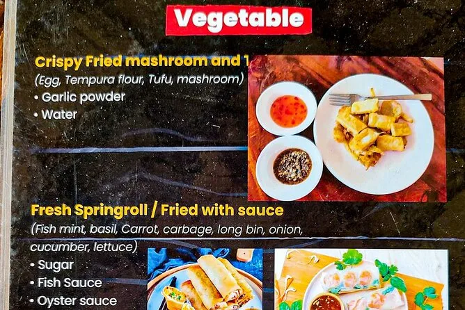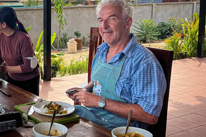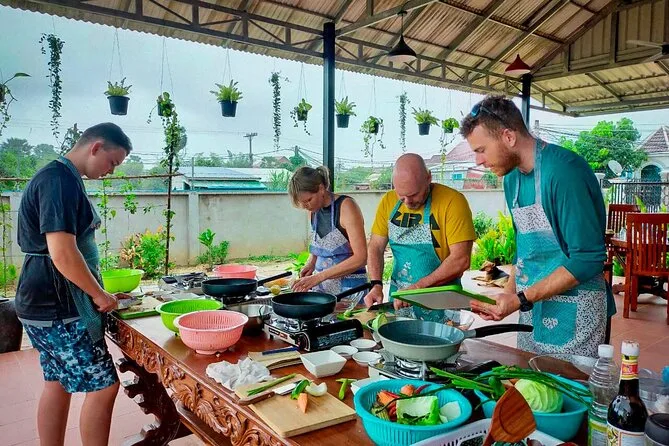 La tua giornata comprende trasporto privato con pickup dall’hotel a Siem Reap, tutte le tasse e ingressi inclusi, acqua fresca al lemongrass o acqua normale all’arrivo, tutti gli ingredienti e gli strumenti necessari per il corso pratico di cucina Khmer guidato da uno chef locale—e infine il pranzo insieme nel tranquillo padiglione del giardino prima di tornare in città.