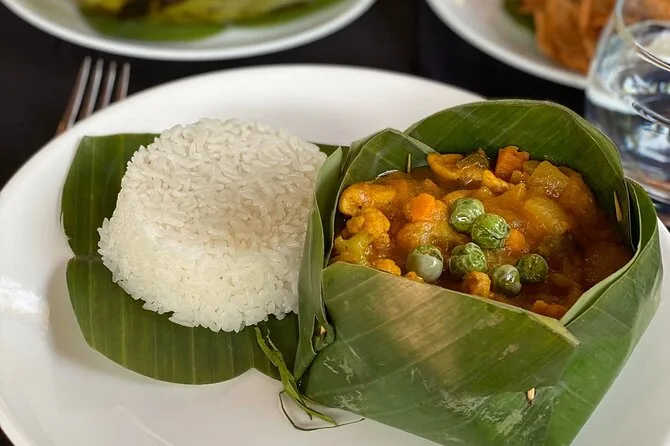 La tua mezza giornata include il pickup e drop-off in tuk-tuk dall’hotel a Siem Reap, tutti gli ingredienti per tre piatti classici cambogiani (involtini, curry, banane al zucchero di palma), acqua in bottiglia e asciugamano fresco all’arrivo, istruzioni pratiche da uno chef locale in un contesto rurale, più un ricettario da portare a casa dopo il pranzo condiviso.