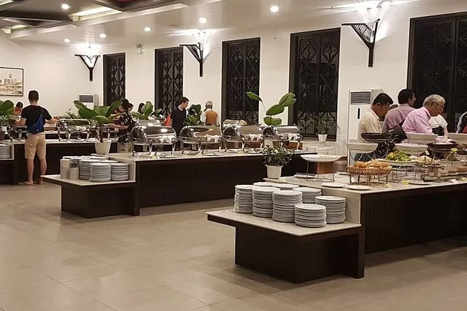La serata include il pickup andata e ritorno dall’hotel in tuk-tuk o minivan, l’ingresso a un autentico spettacolo di danza Apsara in un ristorante locale di Siem Reap e un ricco buffet con piatti tradizionali cambogiani, per poi tornare comodamente in hotel.
