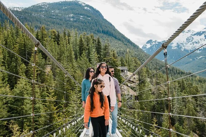Salirai sopra le foreste di Squamish con la Sea to Sky Gondola, sentendo il passaggio dall’aria marina al fresco di montagna mentre le cabine di vetro ti portano in alto. Attraversa un ponte sospeso che si muove dolcemente, fermati alle piattaforme panoramiche per ammirare la valle selvaggia e condividi qualche momento di quiete con chi conosce queste montagne come le proprie tasche.