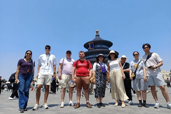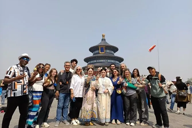 La tua giornata include biglietti d’ingresso per Tempio del Cielo, Tempio Lama e Palazzo d’Estate; commenti guidati da una guida locale in inglese; trasporto confortevole con aria condizionata tra i siti; e un pranzo autentico con anatra alla pechinese prima di tornare in città.