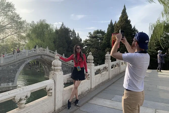 Camminerai nella storia viva di Beijing — dai rituali all’alba al Tempio del Cielo, ai corridoi avvolti dall’incenso del Tempio Lama, per poi gustare l’inconfondibile anatra alla pechinese prima di perderti tra i sentieri sul lago del Palazzo d’Estate. Una giornata fatta di storie, sapori, silenzi e qualche risata che ti resterà nel cuore.
