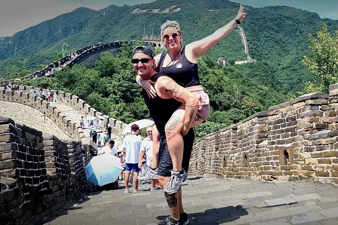 Arrivare alla Grande Muraglia di Mutianyu è stato diverso da come immaginavo — c’è una calma sotto gli alberi all’ingresso, nonostante la folla. L’ingresso rapido ci ha davvero evitato la fila (non sono paziente prima del caffè). Li ha distribuito i biglietti e ci ha indicato dove ritrovarci per pranzo; ci ha anche insegnato a pronunciare “Mutianyu” correttamente. Li ha riso quando ho provato a dirlo in mandarino — probabilmente l’ho storpiato. La muraglia è più ripida di quanto sembri in foto; le gambe me lo ricordano ancora. C’è un punto vicino alla Torre 14 dove il vento si fa più forte e si sente l’odore degli aghi di pino mescolato a qualcosa di affumicato da un venditore lì sotto.