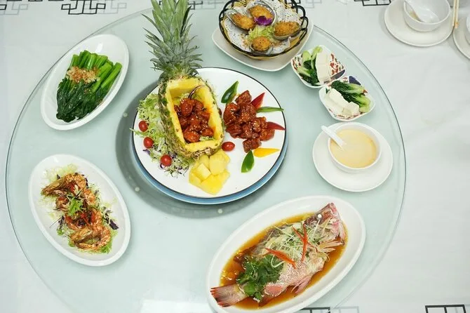 A seconda del pacchetto scelto, potresti gustare noodles sampan freschi o un pasto a base di pesce per pranzo o cena.