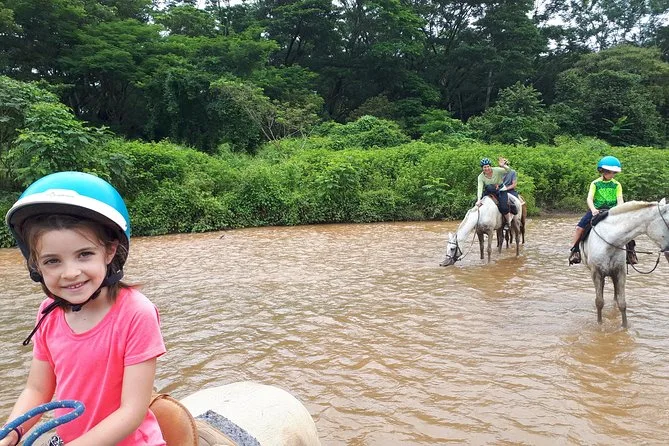 La tua giornata include un giro a cavallo guidato lungo sentieri tra fiumi e giungla di Guanacaste con una guida esperta che ti porterà a scoprire la fauna locale; caschi per la sicurezza; selle comode; snack durante una pausa all’ombra; e tempo finale per lavare il tuo pony prima di tornare.