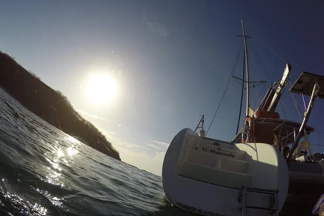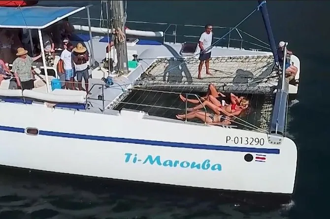 La prima cosa che ho notato è stata la sensazione della sabbia sotto i piedi—calda, un po’ granulosa, che si infilava tra le dita mentre aspettavamo vicino al chiringuito sulla spiaggia. I ragazzi che gestivano la barca ci hanno fatto cenno di avvicinarci e, onestamente, mi ha fatto piacere la loro energia rilassata. Siamo saliti su una piccola barca a motore per raggiungere il catamarano (si chiama Ti Marouba—mai avrei indovinato), e ricordo di aver pensato che avrei dovuto portare un asciugamano in più. Il sole era già alto ma non troppo forte, quel tipo di luce dorata tipica della Costa Rica.