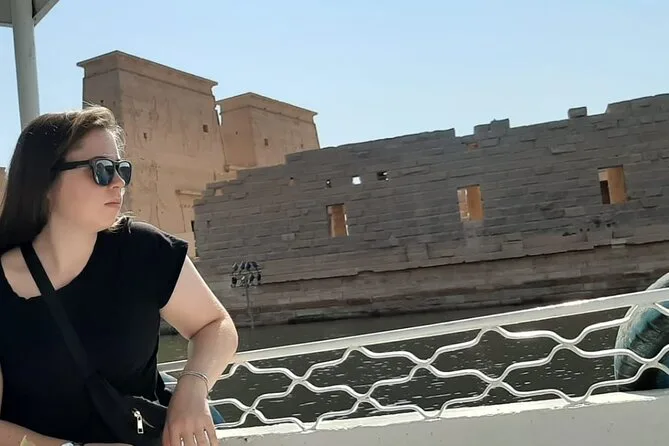 La tappa successiva è stata l’Obelisco Incompiuto. Onestamente, non pensavo mi interessasse molto un pezzo di granito, ma vedere da vicino quei segni degli antichi utensili mi ha emozionato più del previsto. Ahmed ha passato la mano sulle crepe raccontandoci che già secoli fa si erano accorti che si sarebbe spezzato, così lo hanno lasciato lì. Ha riso quando ho provato a dire “obelisco” in arabo (l’ho sicuramente storpiato). Poi siamo saliti su un motoscafo per il Tempio di Philae. Il viaggio è stato tranquillo — solo l’acqua che sbatteva contro lo scafo e qualche lampo di canneti verdi lungo le rive. Il tempio si trova su un’isola tutta di pietra chiara e ombre; chiudi gli occhi e quasi senti l’incenso nell’aria.