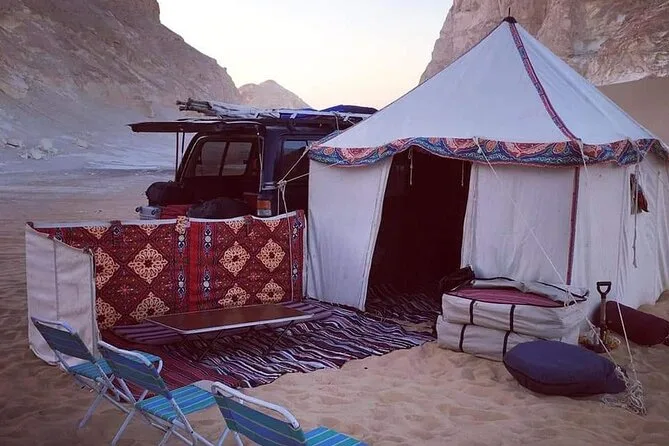 Parti da Il Cairo verso il selvaggio Deserto Occidentale d’Egitto con una guida locale—ammira i colli vulcanici del Deserto Nero, accampa tra le surreali formazioni calcaree del Deserto Bianco, condividi una cena BBQ sotto le stelle e svegliati con l’alba sulle dune di sabbia. Aspettati momenti di meraviglia silenziosa (e forse scarpe sabbiose), con pause per tè e pasti freschi lungo il percorso.
