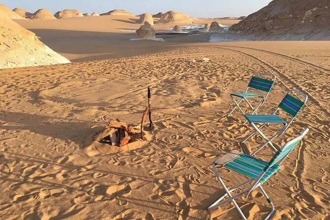 Il viaggio include il pick-up da Il Cairo con van privato (max 11 persone), tutta l’attrezzatura per campeggiare una notte nel Deserto Bianco, pranzo il giorno dell’arrivo seguito da cena BBQ sotto il cielo aperto, colazione prima del ritorno, soste all’Oasi di Bahariya, ai colli vulcanici del Deserto Nero, alle scogliere della Valle di Agabat, alle rocce scintillanti della Montagna di Cristallo e una pausa rinfrescante a una sorgente naturale prima di tornare a casa.