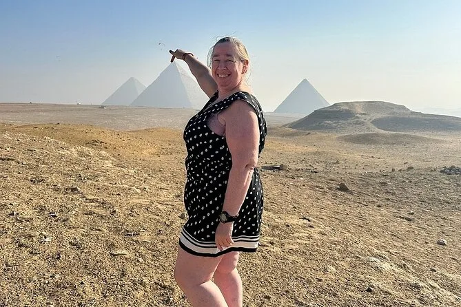 La giornata include voli andata e ritorno tra Sharm El Sheikh e Il Cairo con trasferimento dall’hotel e ritorno in veicolo climatizzato. Sono inclusi tutti i biglietti per le visite, compresi quelli per il complesso delle Piramidi di Giza e il Museo Egizio, una guida egittologa privata, acqua in bottiglia per rimanere idratati e il pranzo prima del rientro serale (sabbiolina nelle scarpe opzionale).