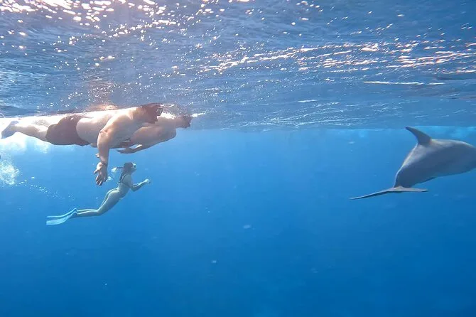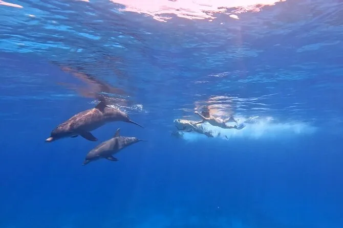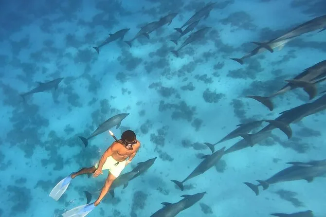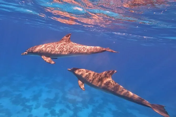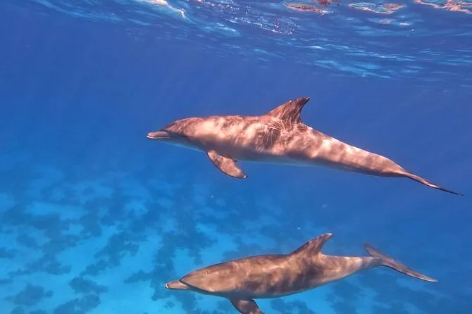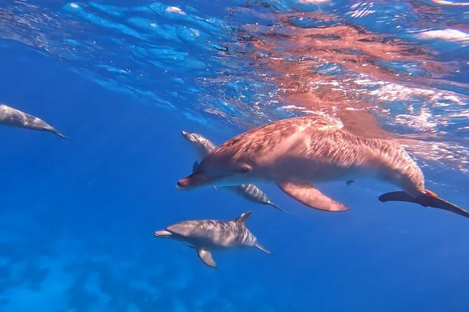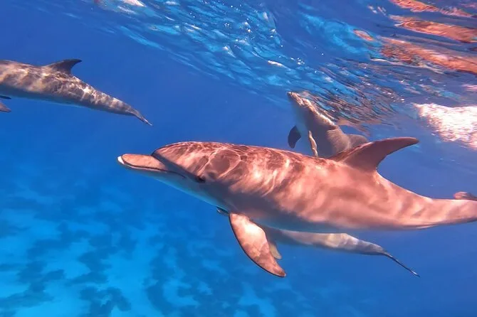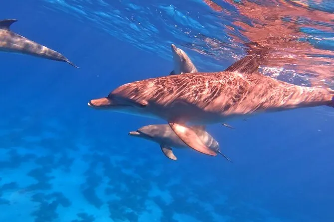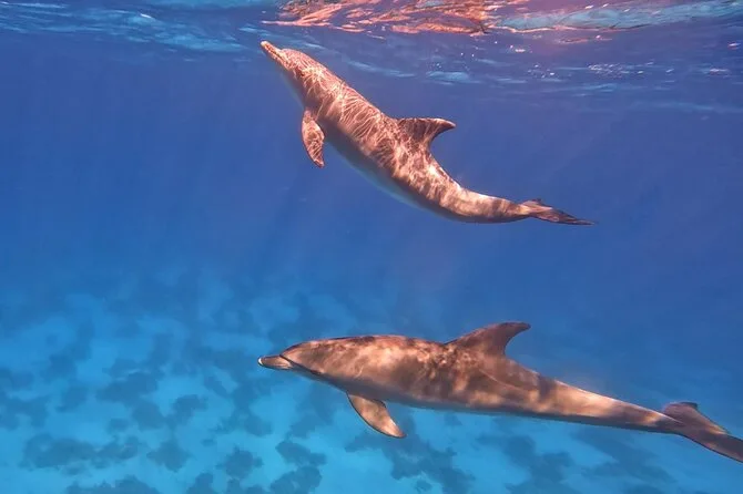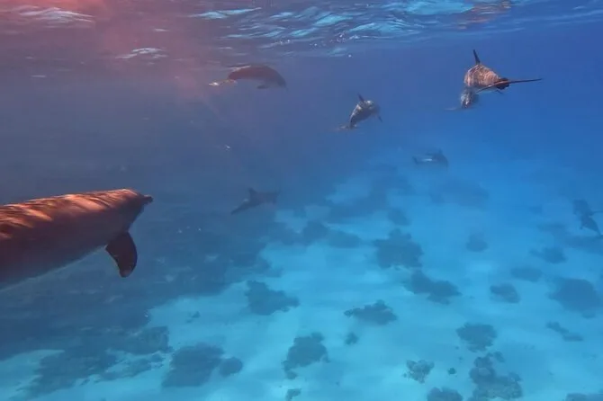 Nuota accanto ai delfini selvatici al Dolphin House vicino a Hurghada, guidato da esperti locali che conoscono ogni angolo di queste acque. Goditi due soste snorkeling uniche tra le barriere coralline del Mar Rosso, poi rilassati sul ponte con un pranzo mentre il sole ti asciuga la pelle. Non è solo un incontro con i delfini, ma un’esperienza fatta di risate, cibo e momenti di pace in mare.