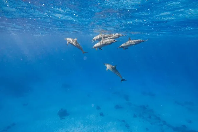 Il tuo giorno include il pick-up e ritorno in hotel con veicolo climatizzato da qualsiasi punto di Hurghada, sette ore a bordo di una barca confortevole con guide esperte del posto, attrezzatura snorkeling di qualità per entrambe le soste al Dolphin House e a un altro sito vicino, bevande analcoliche illimitate durante tutto il viaggio, pranzo fresco cucinato a bordo dopo le sessioni di nuoto — e se il tempo lo permette, anche divertenti giri in banana boat o quadra boat prima del rientro a terra.