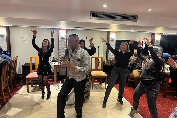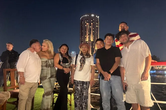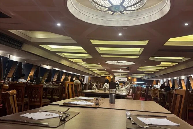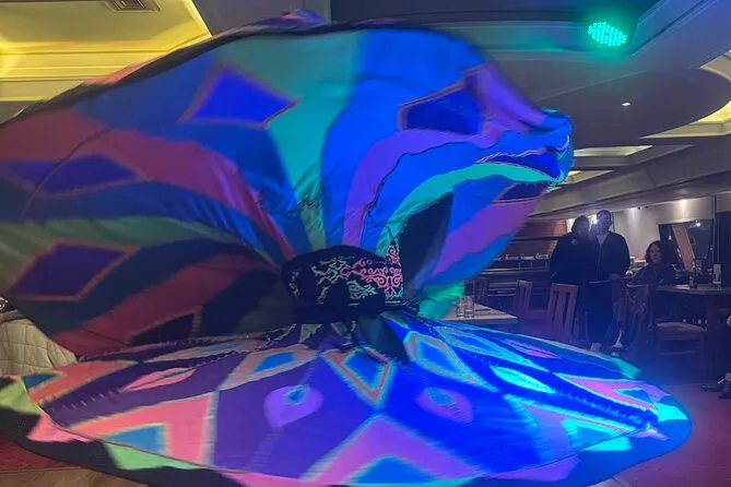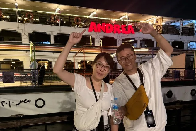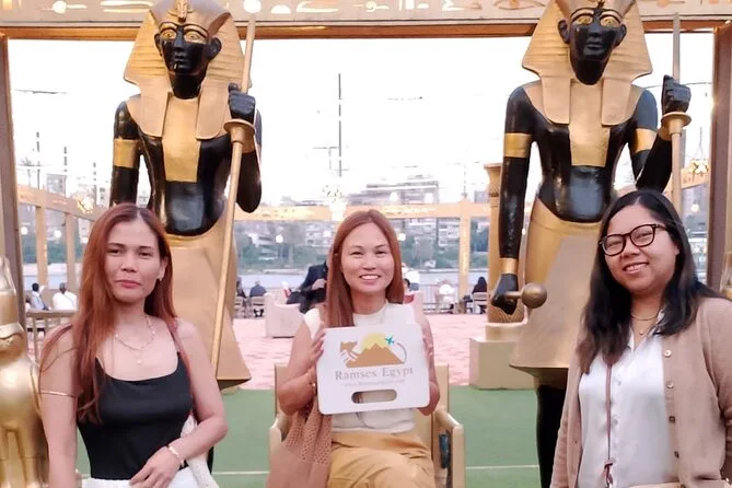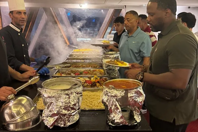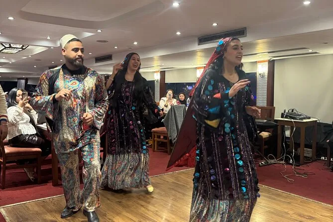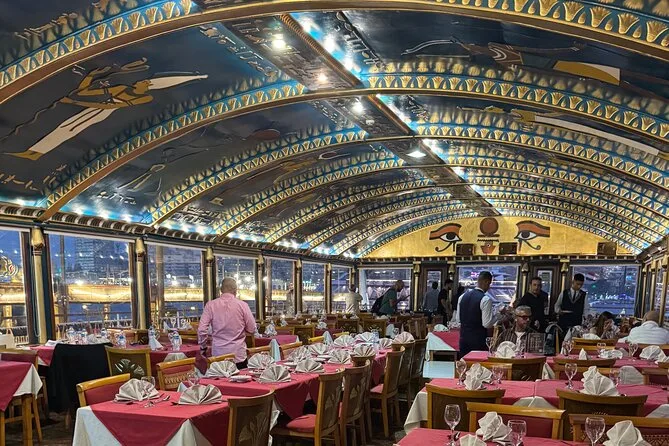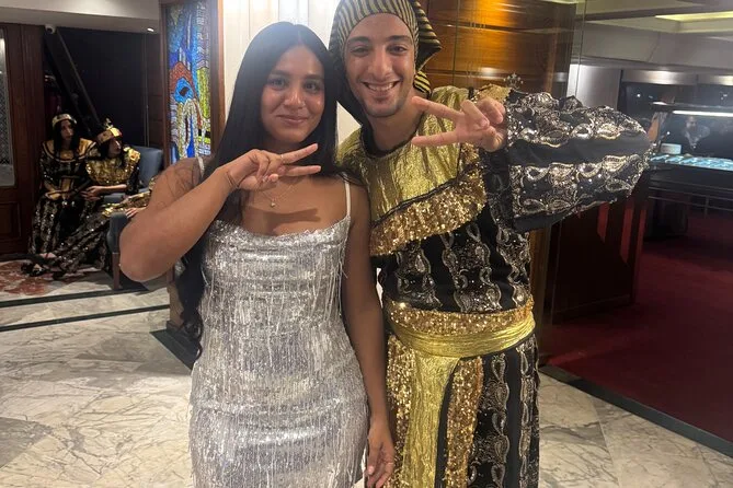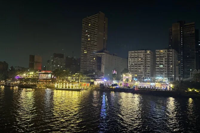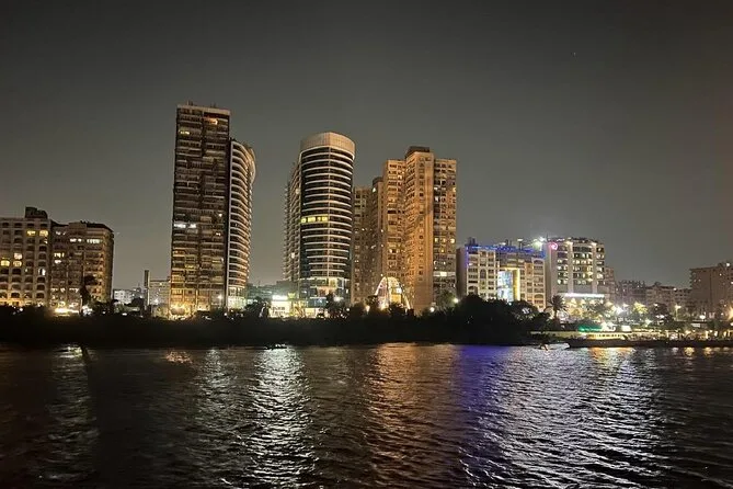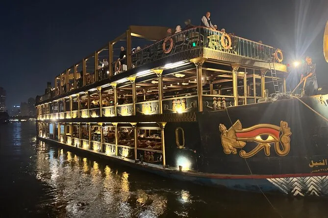 La tua serata include il comodo pick-up e drop-off in hotel a Il Cairo o Giza, l’accompagnamento di una guida locale che parla inglese, l’accesso a un ricco buffet a bordo mentre navighi sul Nilo sotto le luci della città, e l’intrattenimento dal vivo con danza del ventre, spettacolo Tanoura e musica tradizionale, per poi tornare comodamente in hotel.